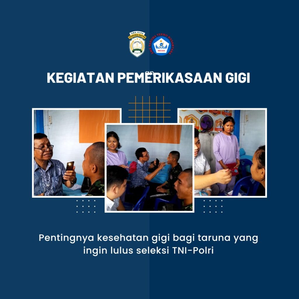 Sebagai bagian dari pembinaan kesehatan siswa, beberapa sekolah taruna di Medan secara rutin mengadakan kegiatan pemeriksaan kesehatan gigi yang dilakukan oleh dokter gigi profesional.